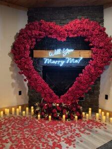 We do. We can coordinate an “In-Room Romantic Dinner” to accompany your balloon decor, creating a complete, turnkey experience for proposals, anniversaries, or just a special night in the cabin.